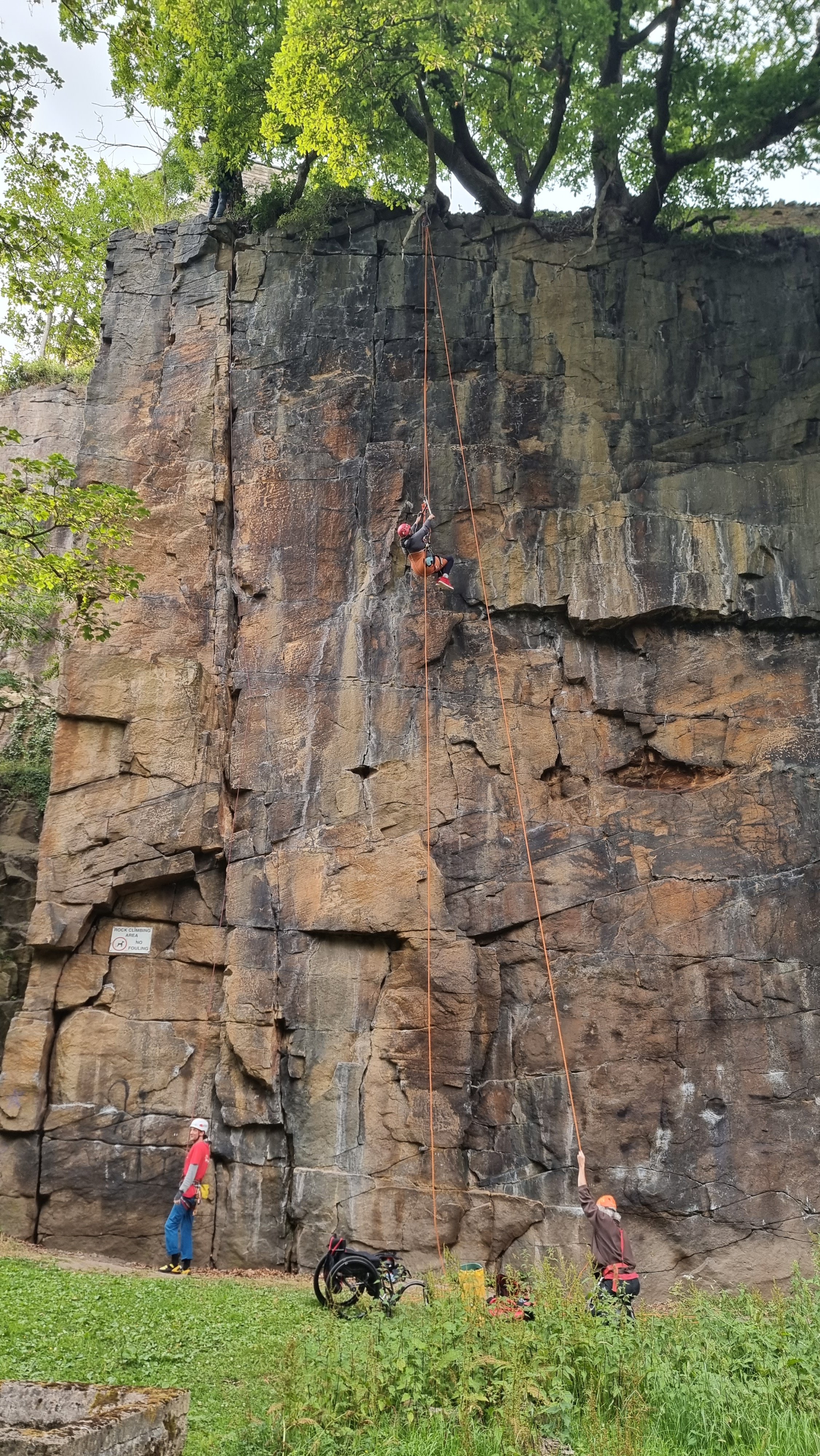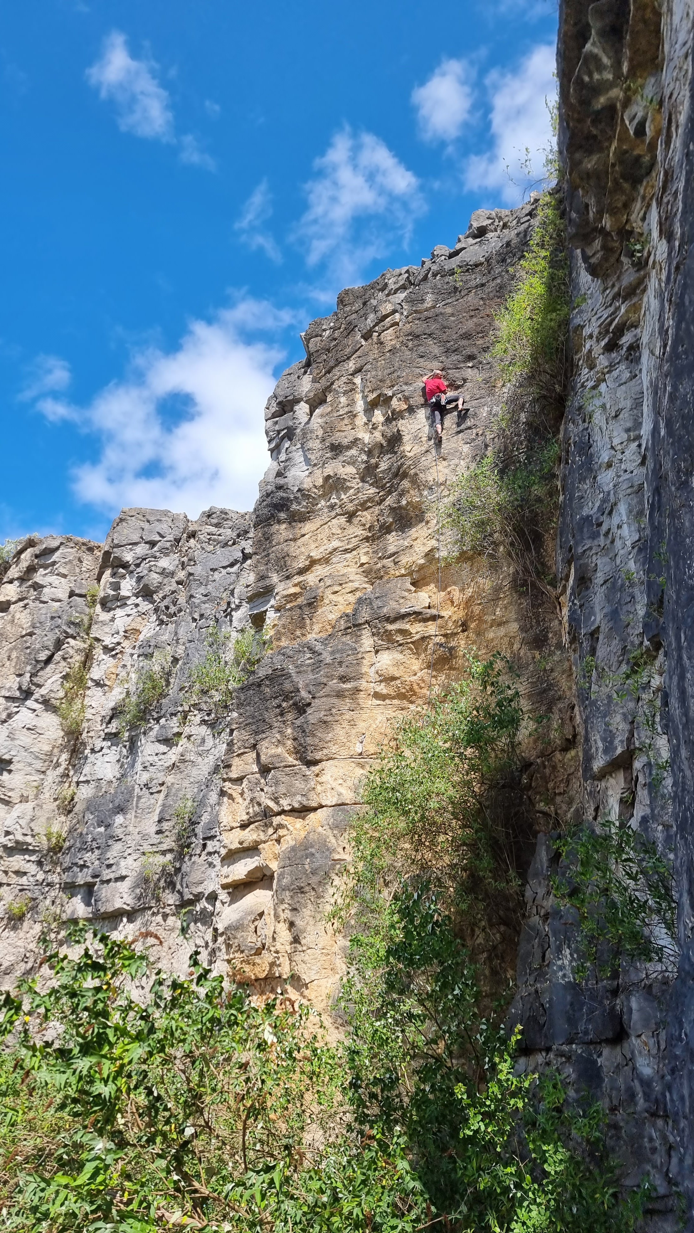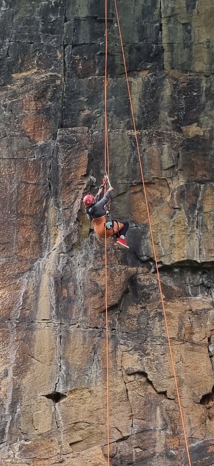 Just another week in The Peak started off with a visit to one of my regular haunts: New Mills Torrs, but with an unusual objective. NMT is blessed with unrelenting steepness, so is a great all-weather venue, but it is also drive-in accessible, making it the perfect spot to catch up with Michelle and Dave for a bit of jumaring practice on Michelle’s Route to the Sky: https://www.routetothesky.co.uk/about-1