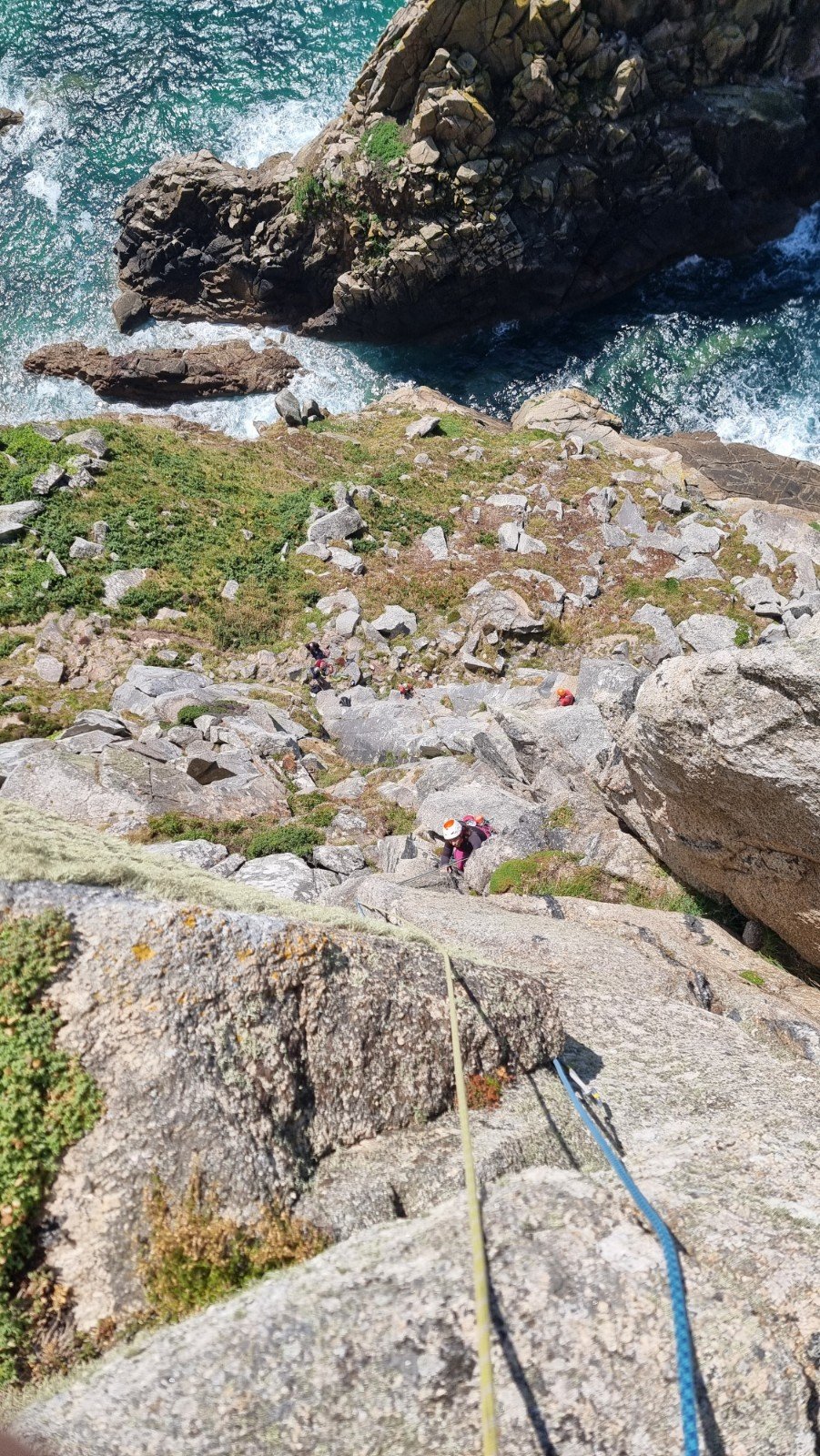 With the overhanging nature of the rock, and the unrelenting cacophony, communication is a real challenge. We ended up supplementing our usual “three tugs to climb” protocol with WhatsApp (which helped turn a knot in the rope from a potential epic into an amusing interlude). Plenty more to come back for nearby.