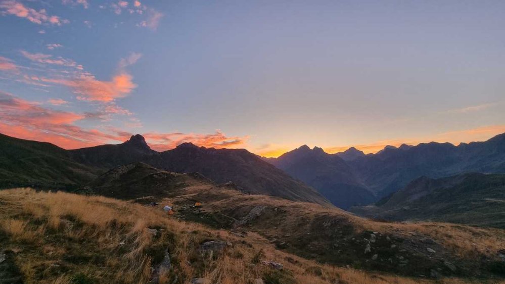 We were down at the foot of the buttress in an hour and back at the hut in a bit short of another – most importantly arriving with 5mins to spare before the 7pm deadline. Our hosts were mildly surprised we’d made it in time, and gracious with their praise (though because of our uncertain ETA they’d put us on the 2nd dining shift at 8pm). No hardship as it gave time for a celebratory beer and to sort our bivvy spot for the night (we’d managed to book the first night in the hut, but it was already full for the second night).