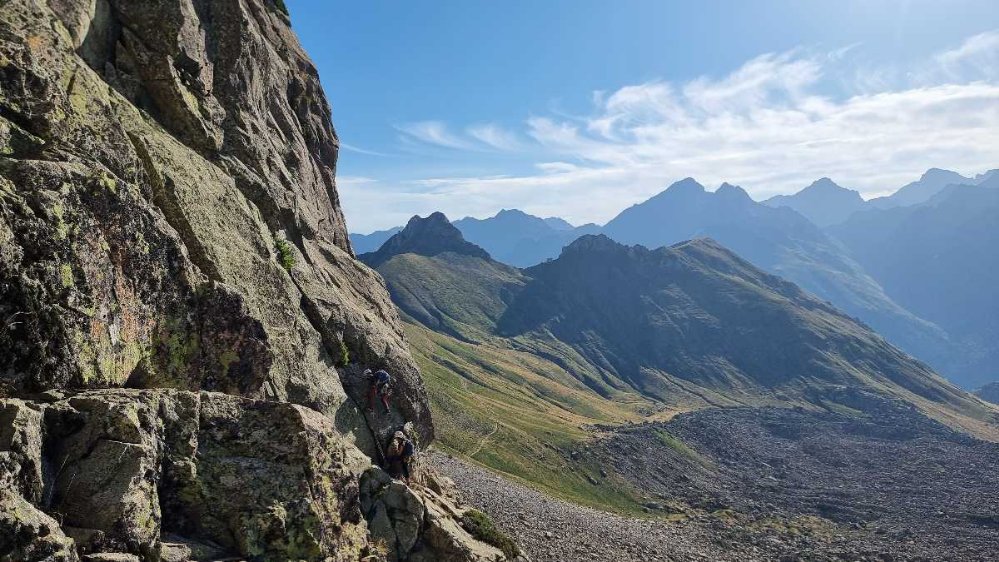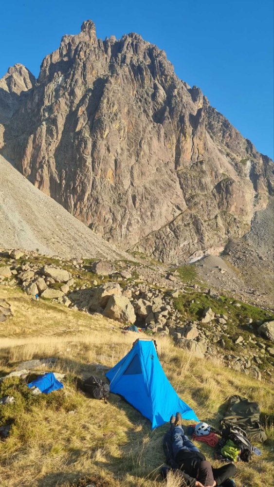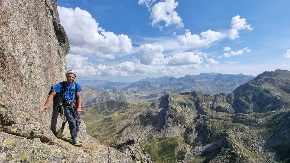 Part 1 of Episode 12 was safely in the bag. Grand Pic du Midi d’Ossau, Direct Southeast Face: ED inf, 540m, 14 pitches up to 6c, 6a obligatory. Take the grades with a pinch of salt, I’d suggest! About 8hrs for the route and 11 hut to hut 🙂