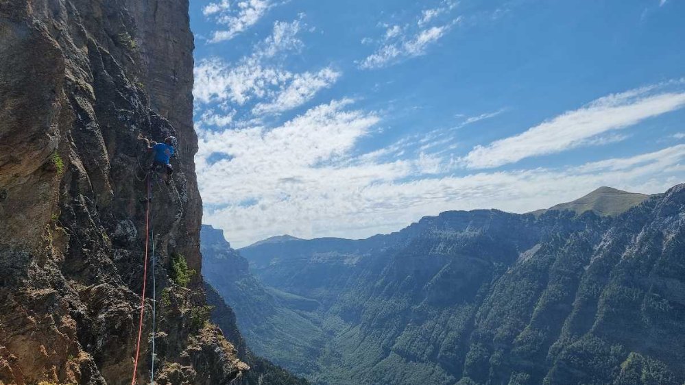The classic PdeL route is a great combination of the best bits of the Brujas route (Rabadá and Navarro) and the “Directa Española” (Anglada and Guillamón), and is pretty sustained at 6a-b with a 6b+ crux pitch. A knowledgeable local at the Pombie refuge acknowledged that the grading on Pic du Midi was tough, but advised that in Ordesa it was even tougher! There’s a very useful topo and trip report here: https://7paredes7jamadas.com/pirineos/