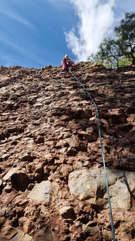 Over the course of a couple of days we did this and all but one of the routes on this superb 100ft wall: Clast Act, 5.9, Full Sail, 11a, and Super Arete, 5.8…