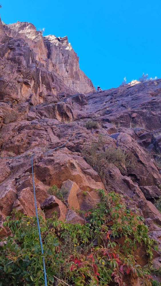 The rock quality on the shady side isn’t up to the same standard, but needs must (it was toasty despite being around 9,000ft). Here’s Helen on the looong slab of Sierra Corazon, and I quite enjoyed Out of the Shadows, 10b.