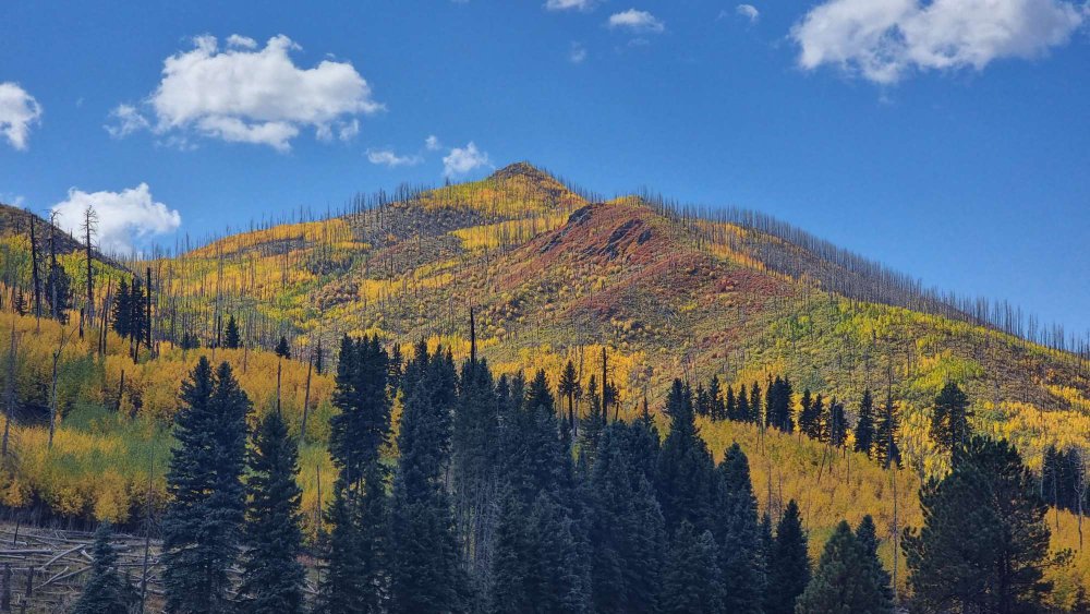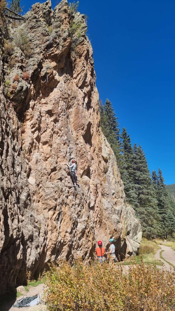 The Las Conchas area sits in beautiful meadows amidst the Jemez Mountains. The rock here is volcanic rhyolite, offering superb friction and a variety of interesting holds. Despite much of the surrounding area being ravaged by a forest fire a few years ago, the destruction of the dominant pine forests have opened up a niche for new-growth Aspen, making for spectacular autumn colours.