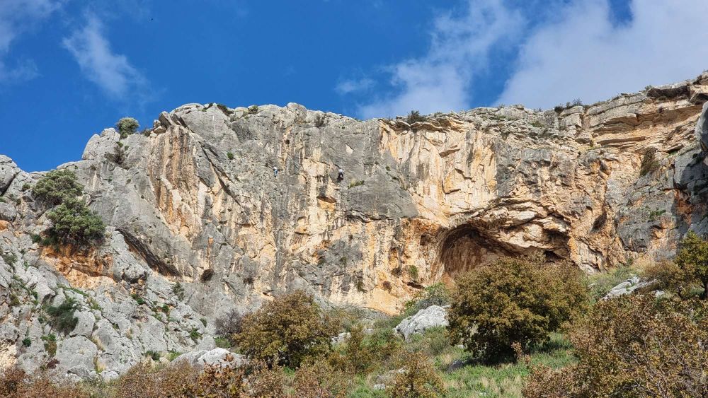 One thing to report is the recommendation to park in the village rather than beneath the crag, following reports of a spate of break-ins a few years ago. It speaks volumes for the welcoming and hospitable Greek culture that these caused absolute uproar in the local community. Parking the van outside the little shack that sells local wines and produce, the patron was more than happy to keep an eye out for us, and I almost had to twist his arm to get him to accept the princely sum of €3 for a couple of litres of his finest red by way of a thank you! It’s no more than a 15mins walk from there to the crag – a small price for the peace of mind.