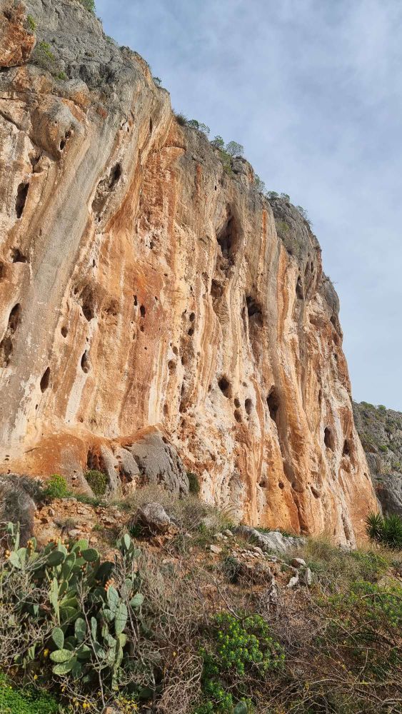 With just a day before a forecasted damp one, we headed to Neraki – perhaps the pick of the bunch. A 15mins stroll along a waterfront track to arrive at this quiet spectacular orange pockety wall. There was a good contingent of Athens climbers out for the day – four days cragging and we’ve only met locals plus a Ukrainian refugee.