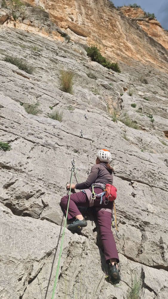 I struggled to repeat two very soft “7bs” from 2019: Words of Wisdom and Dirty Lies (now 6c+s) but did manage Fovera Theli, 7a. However the highlight of the day was some stand-in baby holding while a Swiss couple were juggling sack-packing and belay duty. Very cute…