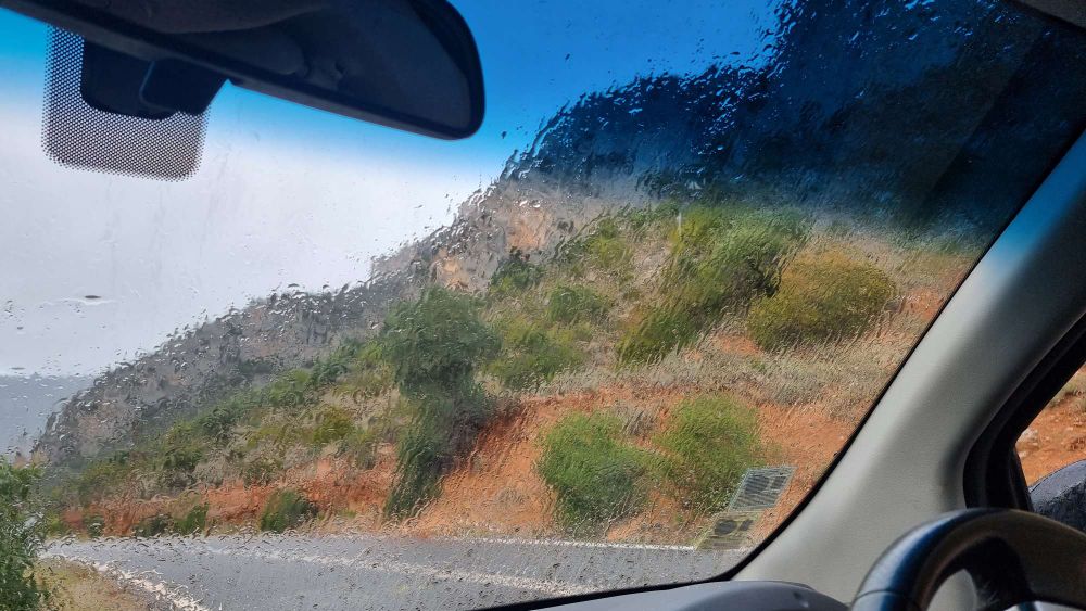 People often comment on us being lucky with the weather (occasionally intimating a pact with you-know-who). Luck doesn’t really come into it – It’s more a question of a) stacking the cards in our favour (by going to sunny places), b) being prepared to shuffle them (by chasing the sun) and c) informing both a) and b) with a lot of browsing of forecasts! Despite all the above, sometimes there’s just too much cruddy weather to out-run, and we just have to suck it up like everyone else. That’s what just happened 😦