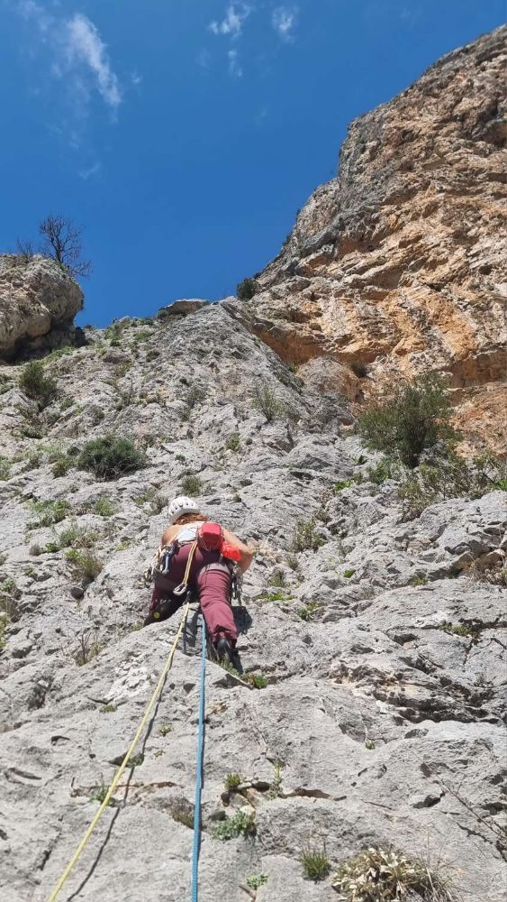 The verdict on our one-route sample of the multi-pitch climbing – allow plenty of time, have a bit in hand, and don’t expect “holiday grades” or well-manicured paths. A bit of post-climb web research gave 6b and 6a for P4 & 5 so more in line with our experience. With those provisos – Get on them!
