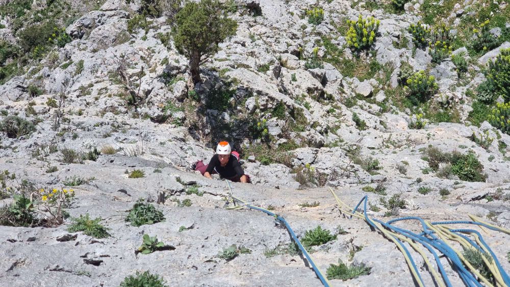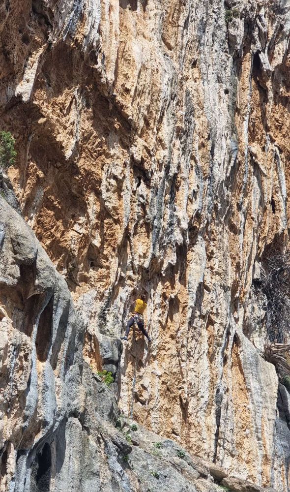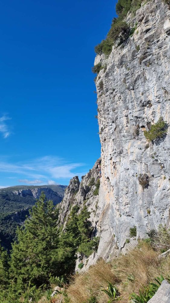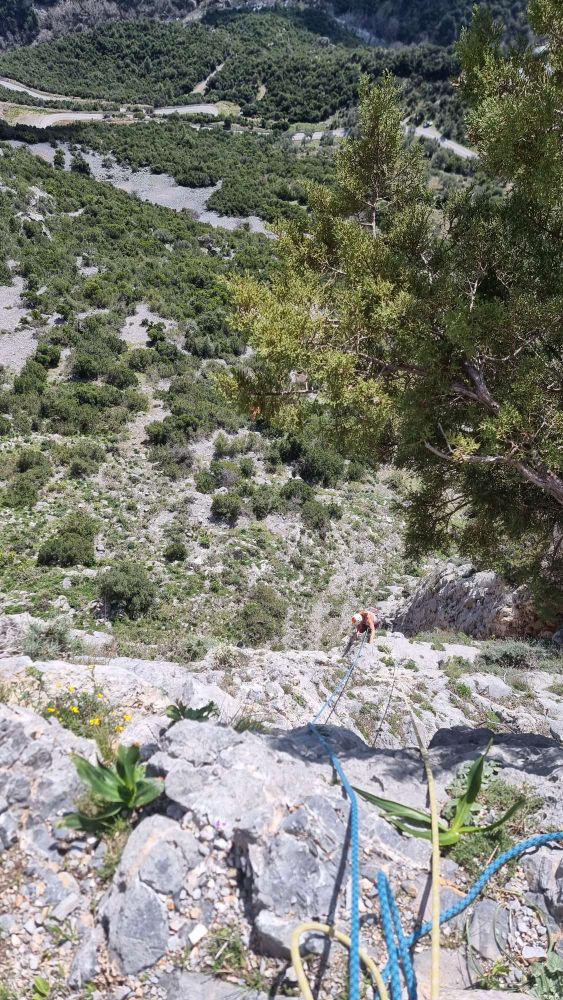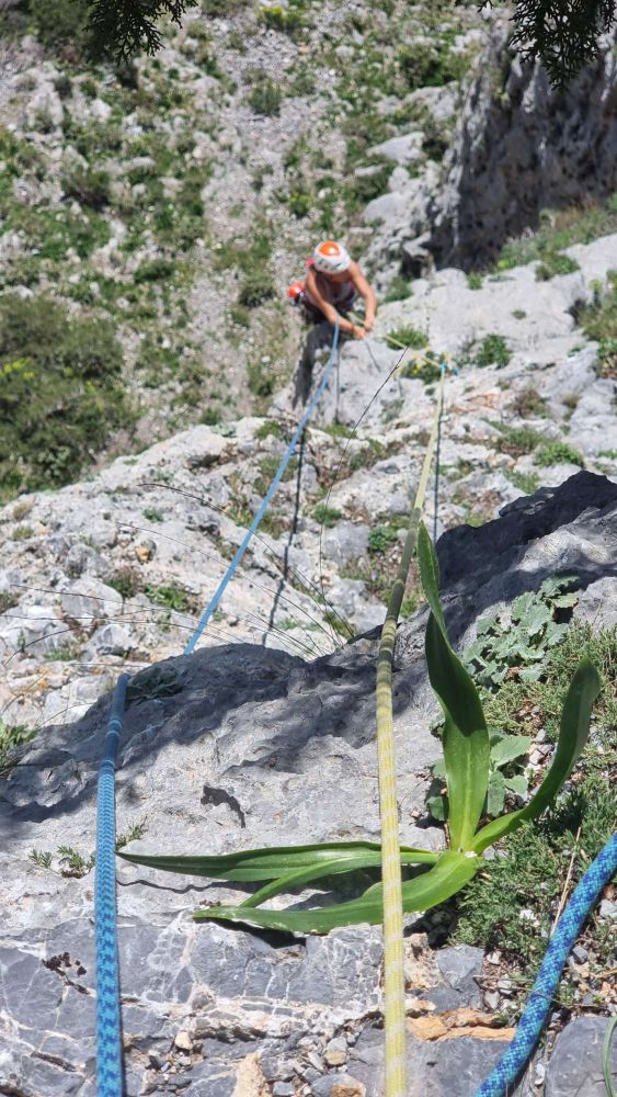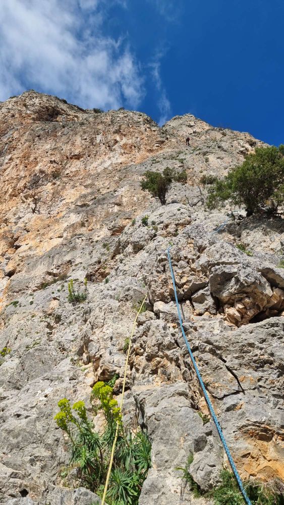 … and were just in time to see a couple of Italian guys finishing La Rampa Koutsampla, 6a. This follows a natural if unlikely line up a ramp (who’d have guessed) and is absolutely superb (if a tad stiff at the grade).