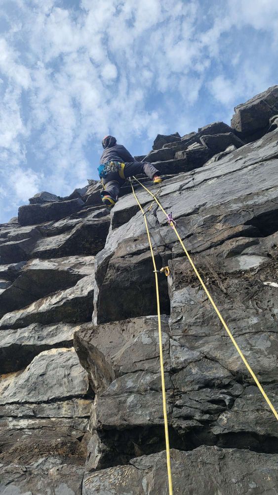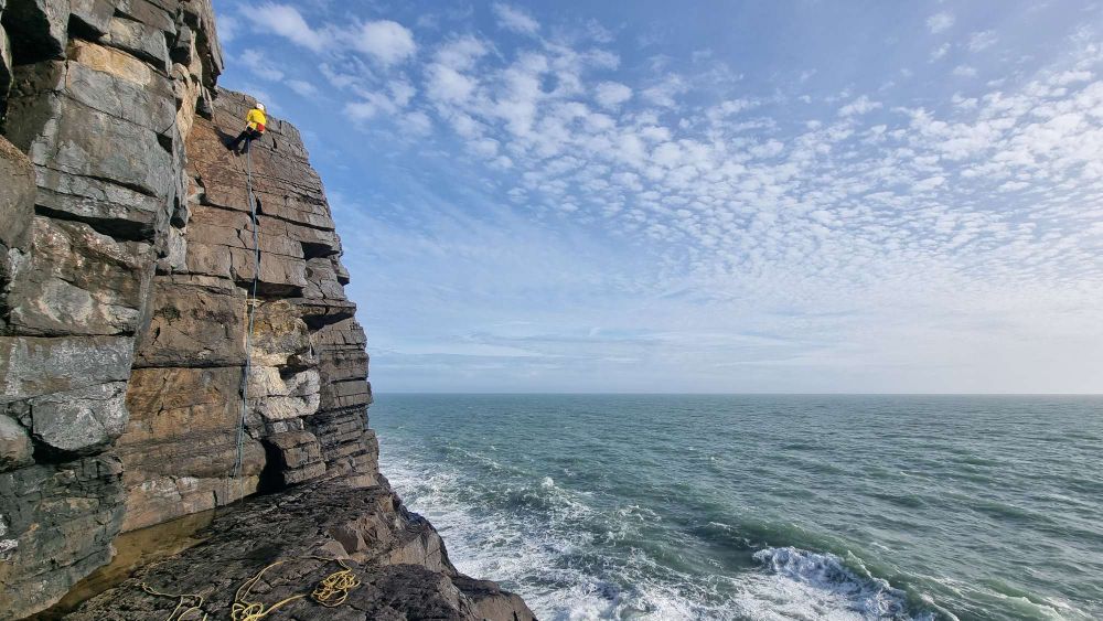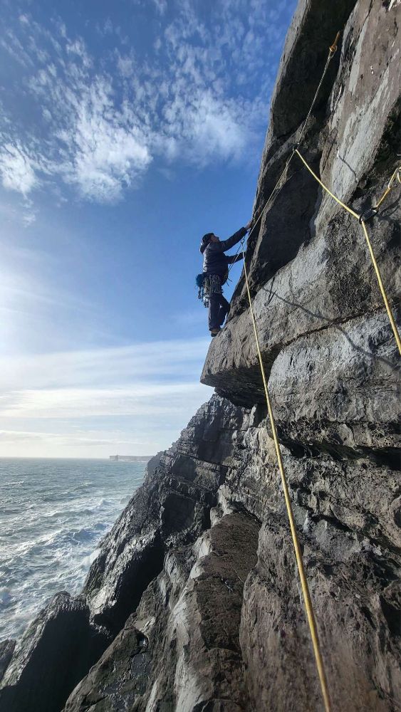 No one would argue that these rate in the top tier of Pembroke routes, but you’d be hard pressed to find a more exhilarating or memorable experience at the grade in the conditions.