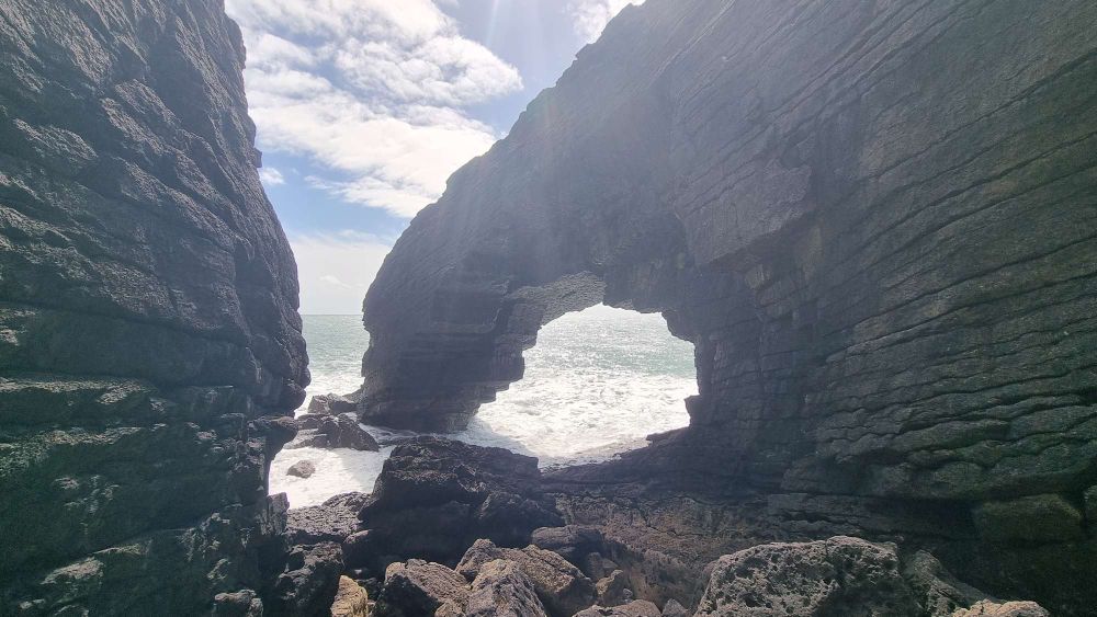 The good news was that we could access the near part of Tilted Ledge itself through the arch, despite the sea conditions.