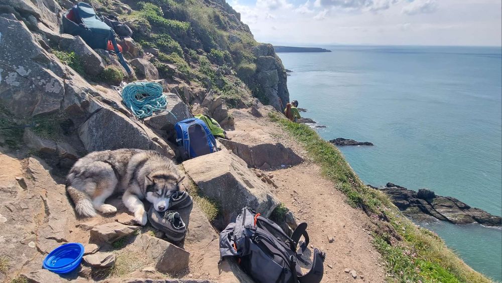 A couple of teams were already in situ, leaving the world’s best behaved crag-dog on guard duty.