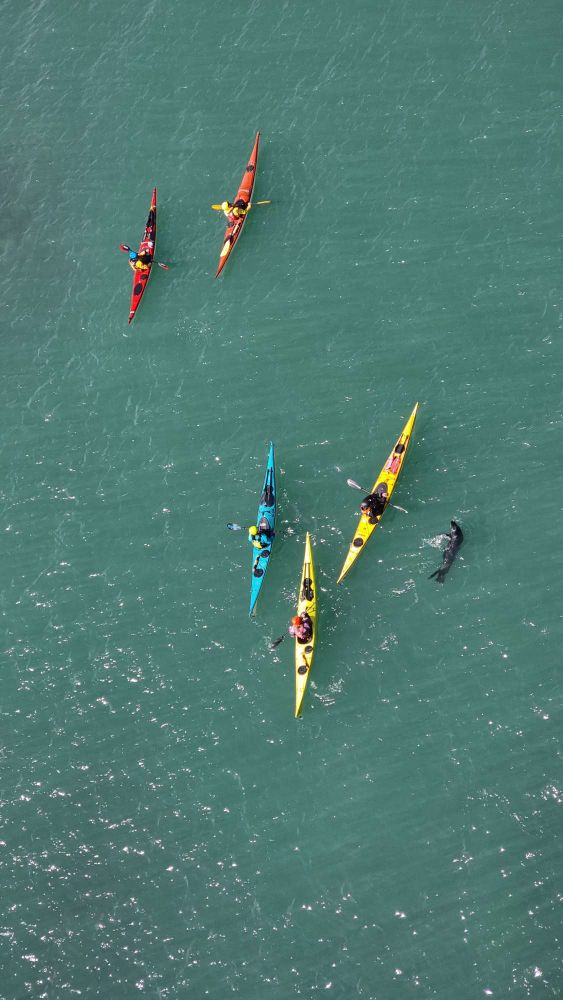 … and kayakers playing in the millpond below.