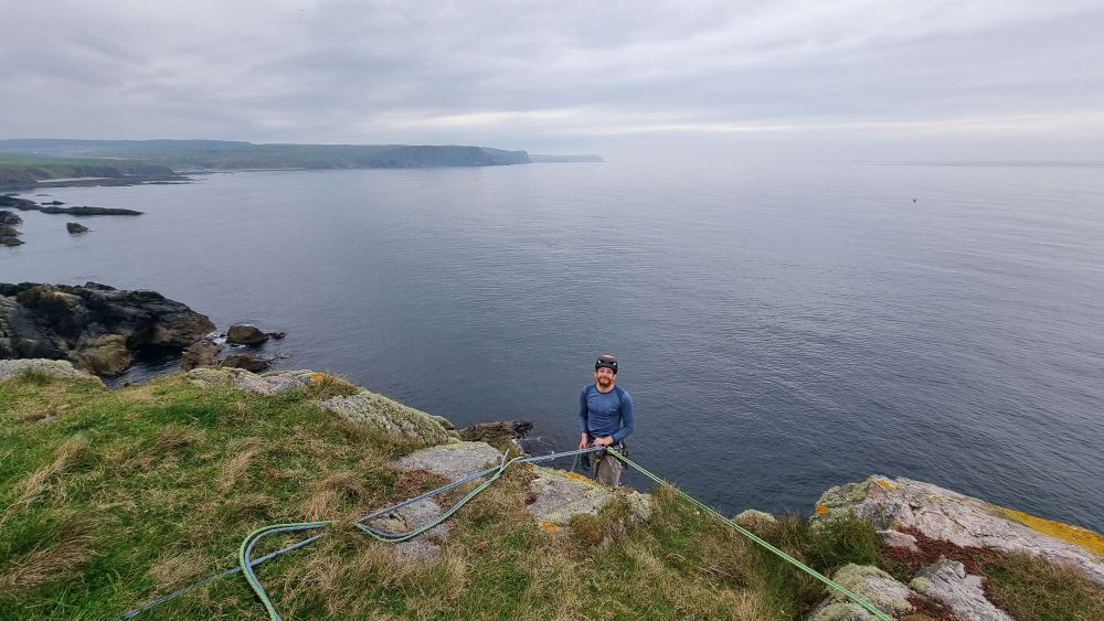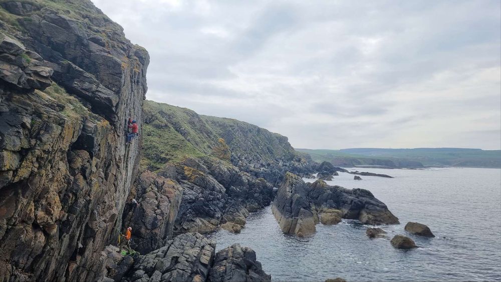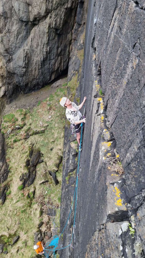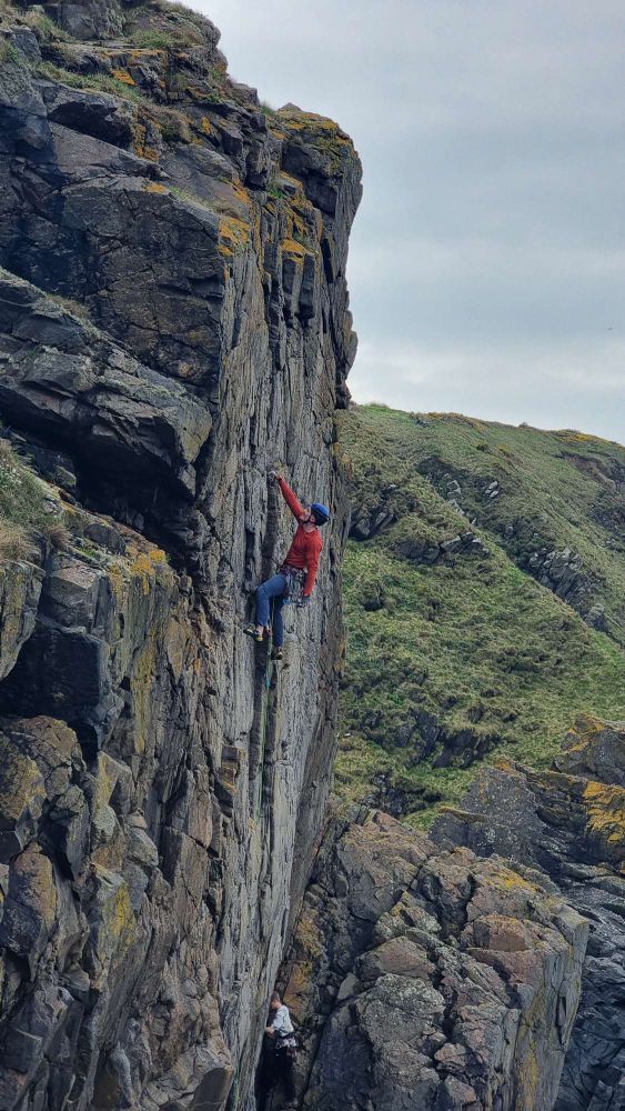 Helen and I visited Rosehearty a couple of years ago, getting a few routes done on the slabby north face; ticking the 4* E2 Afterglow, and even putting up a new route, in a fun-packed day.