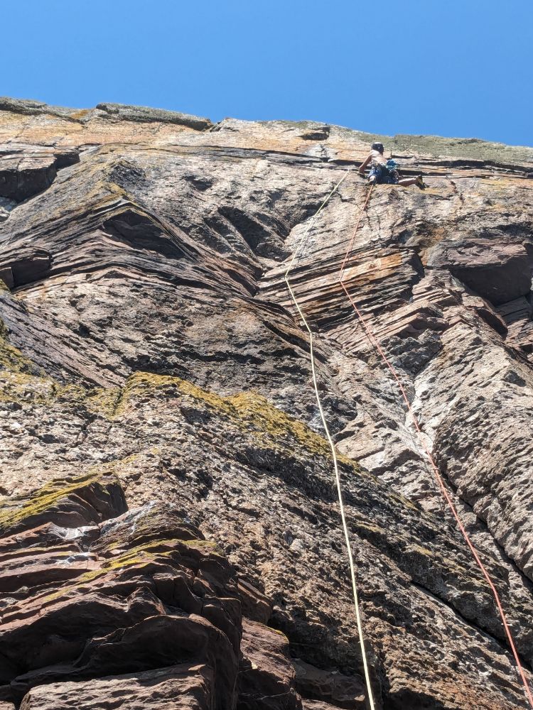Paul picked Toad in the Sole, E2 5b, as Paul said: “Funky moves to get into top groove”. Not quite as immaculate as the other routes we did but certainly 2*s.