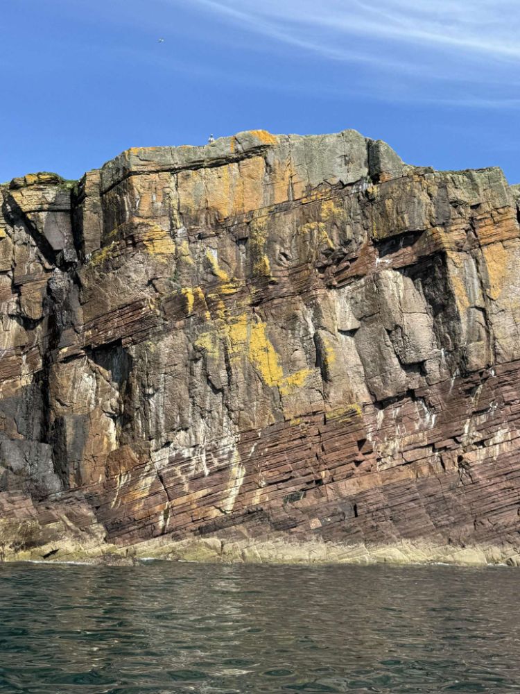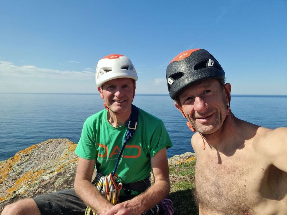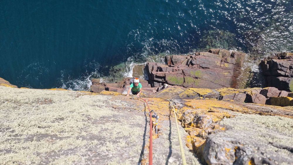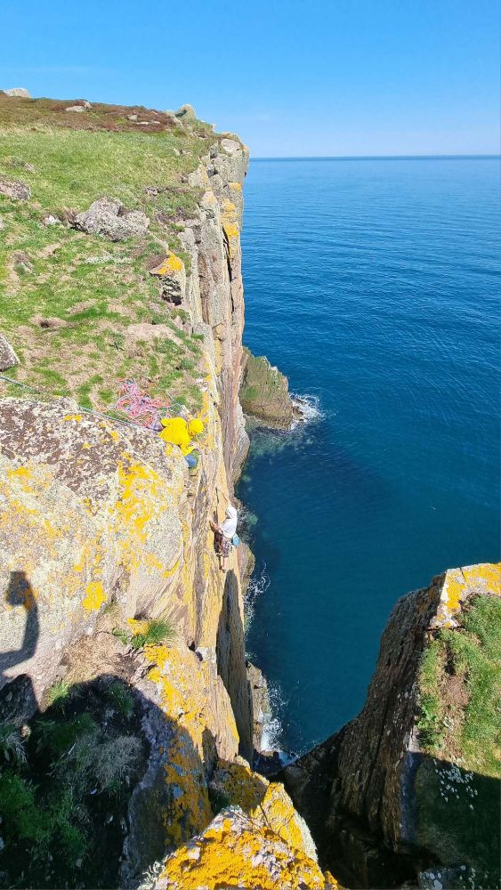 A passing RIB full of tourists were taking pictures as I tied in at the base, and a shouted email address yielded the following brilliant photos from an unusual perspective – big thanks to Wayne and Carol Grantham