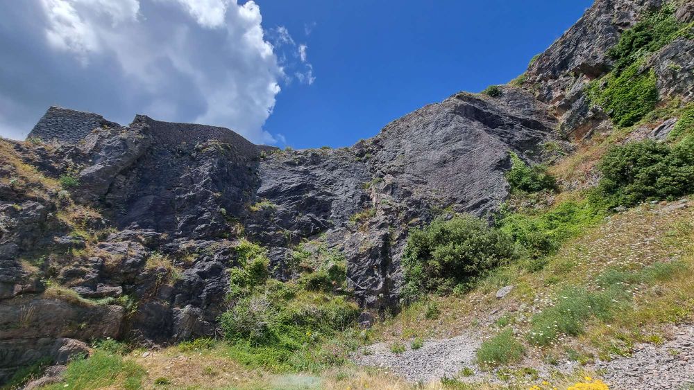 A steep, earthy ridge and a bit of a scramble get you to the foot of the quarry.