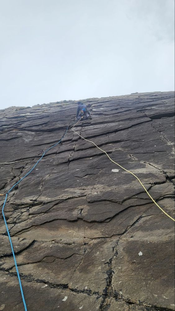 Most of the climbing is pretty benign, on friendly scale crags of slatey rock. We did Hand Crack, S and Sidewinder, VS…