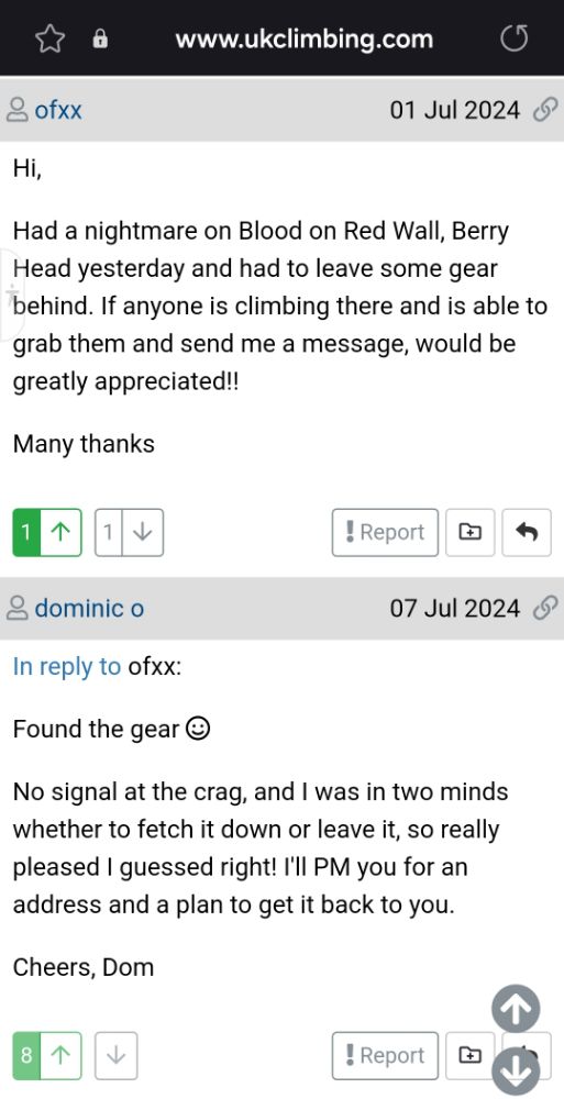 We decided to strip the gear and were relieved to discover, once we were back in signal at the top of the crag, a message on UKC lost and found from a week beforehand: