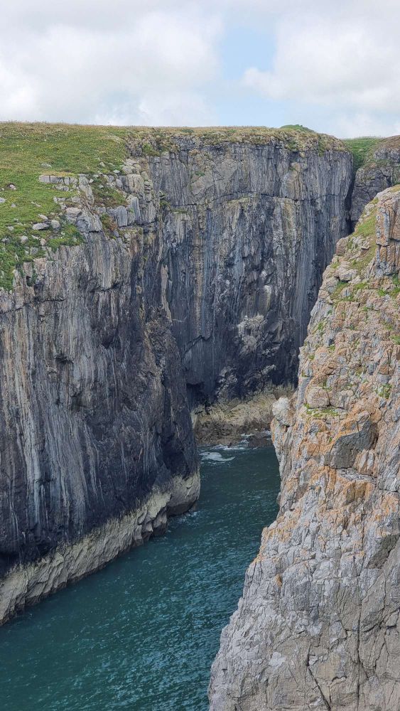 Next day, Helen felt she’d earned a rest and Jake was keen. We hadn’t really got a fixed plan, and were a bit blighted by high tide around noon, but wandering west into the Range from St Govans we stopped to admire Stennis Ford and decided to do Mysteries, E3 5c 5b, on impulse.