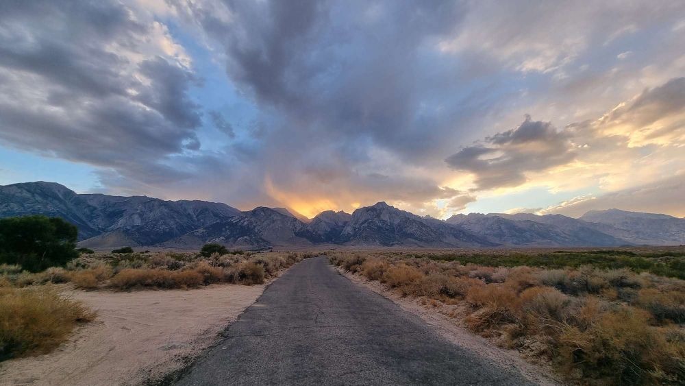 Five hours later we were pulling into the Tuttle Creek Campground ($10/night BLM bargain!) near Lone Pine, in the Alabama Hills, on the slopes of Mount Whitney, just in time for a spectacular, moody sunset.