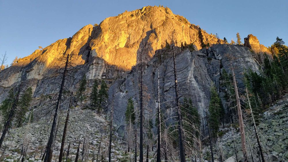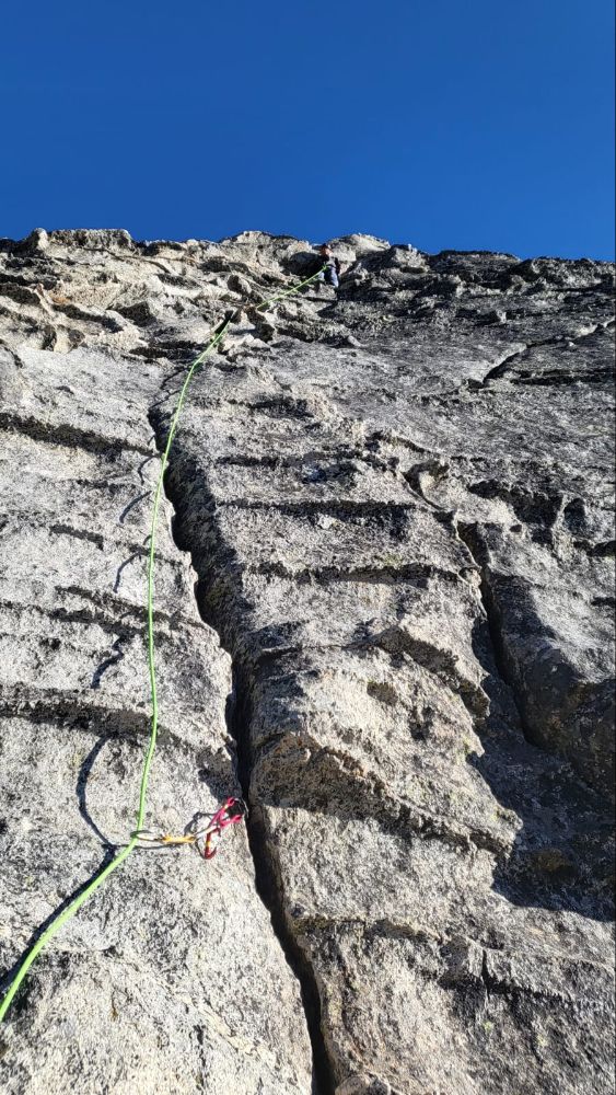 You can traverse fairly straightforwardly between the top-out from SP to the start of CC, though it’s worth following the trail on the Mountain Project app as the path is indistinct in places. I went for a recce, though we’d made a mountaineering judgement to leave CC for the following day. Great late afternoon light on the more west-facing wall of the huge corner it takes.