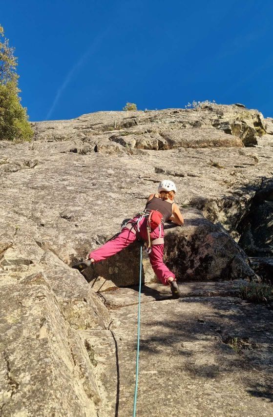 Slide Wall, another few hundred metres further north, gets great evening sun and is a nice place to end the day. Here’s Helen on Name of the Wind, 5.7