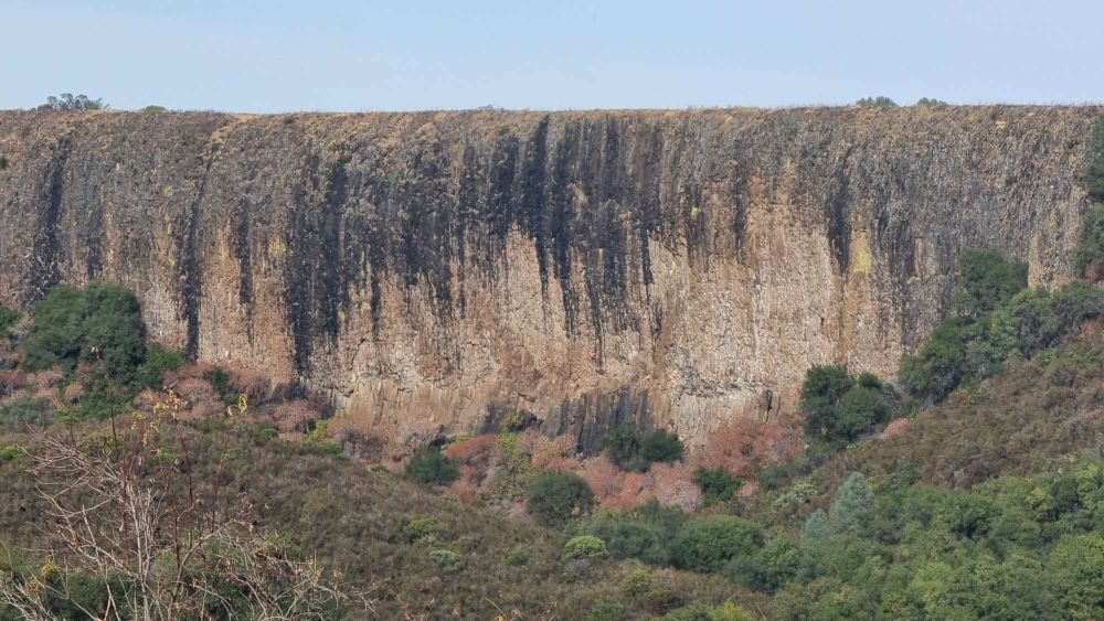 Another journey breaker, and a totally different geology, Table Mountain is an example of an “inverted stream” resulting from a streambed filling with lava, leaving a flat-topped table ringed with a steep Basalt (or maybe Latite?) cliff band.