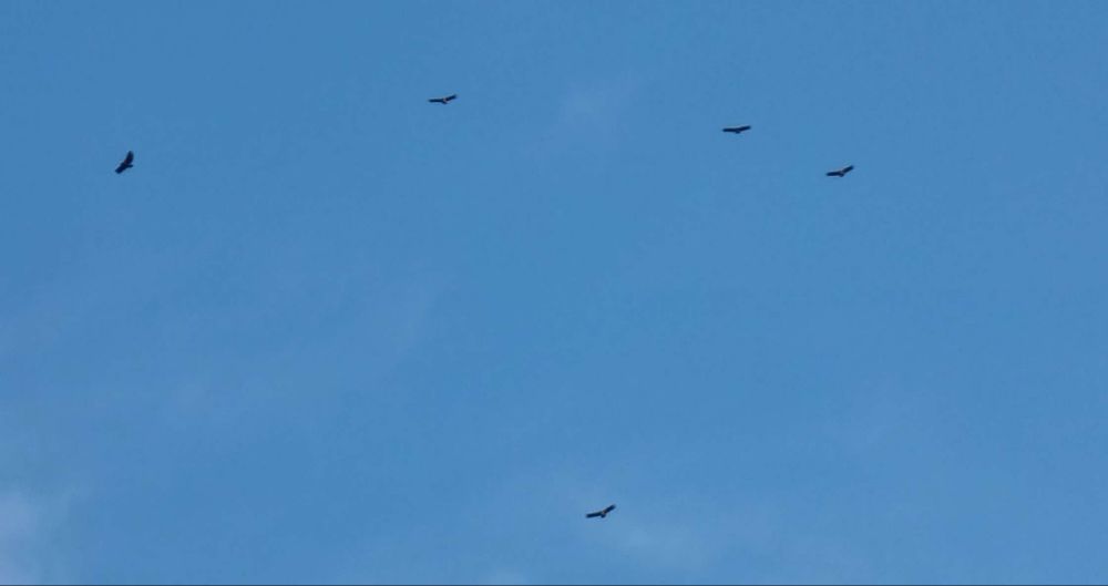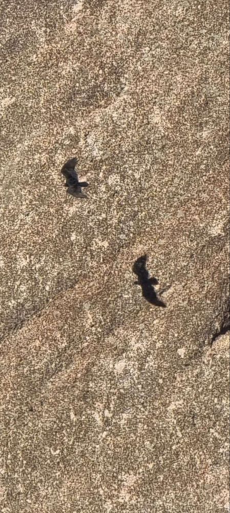 Most of these are Turkey Vultures, an impressive bird with a wingspan of up to 6ft. Here’s one playing with its shadow on the crags opposite.