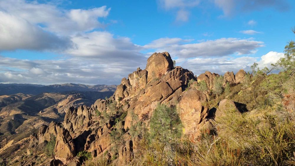 Pinnacles National Park protects a volcanic landscape of wild rock formations – spires, towers, ridges and of course pinnacles!