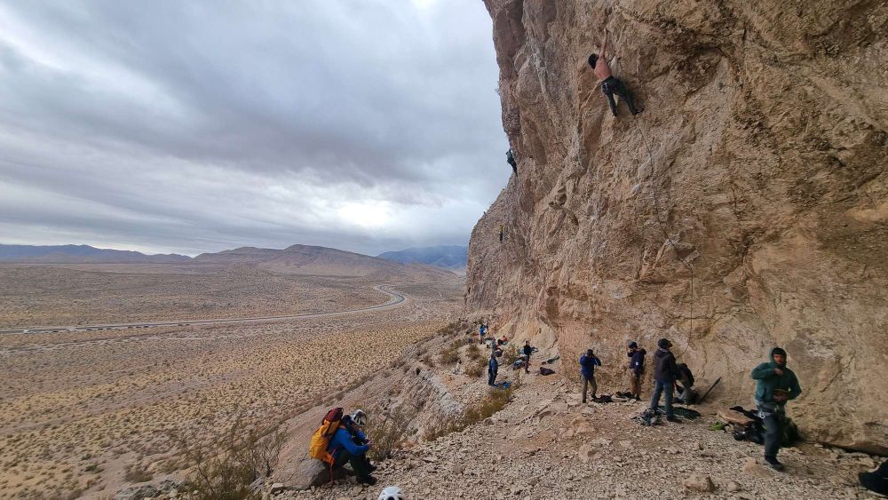 Just a dozen miles from The Strip lies Red Rock Canyon National Conservation Area, part of the National Park Service, protecting a maze of multi-coloured peaks and canyons and home to the world-famous Red Rocks climbing Mecca. Less well-known, circling the city to the West and North, are a ring of Limestone mountains including Mt Charleston at 3,636m but also numerous smaller lumps and bumps. These are steadily being developed into a major climbing resource in their own right. The combination of Red and White rocks, the easy access and benign climate make Vegas perhaps THE major winter climbing destination in the States. It was the obvious place to spend the last ten days or so of our trip, as the temps fell in the higher areas nearby.