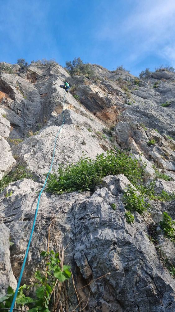Olimpo – there’s a long escarpment dominating the skyline above Manfredonia (sounds like a 70s tribute band) with seemingly a lifetime’s worth of potential cragging, but somewhat surprisingly only one developed crag. Olimpo e Valhalla.