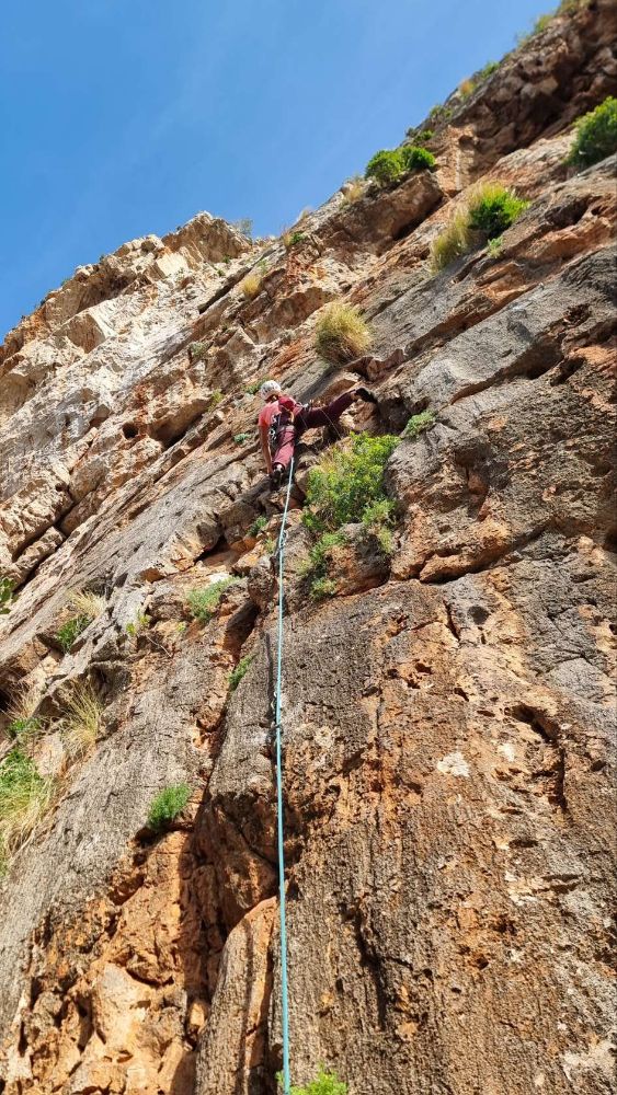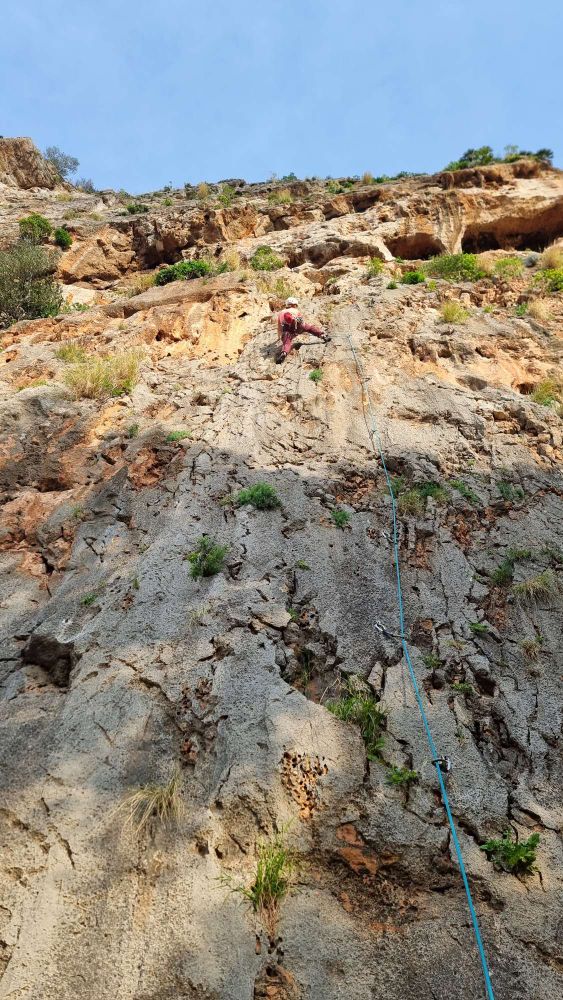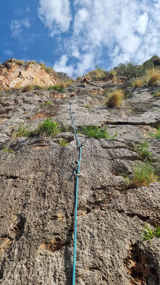 This was the birthplace of climbing in Sicily over 50 years ago, yet surprisingly the routes really aren’t noticeably polished. We did the outstanding Diretta, 6a(or rather the first pitch), one of the very first routes on the island, up a crinkly runnel.