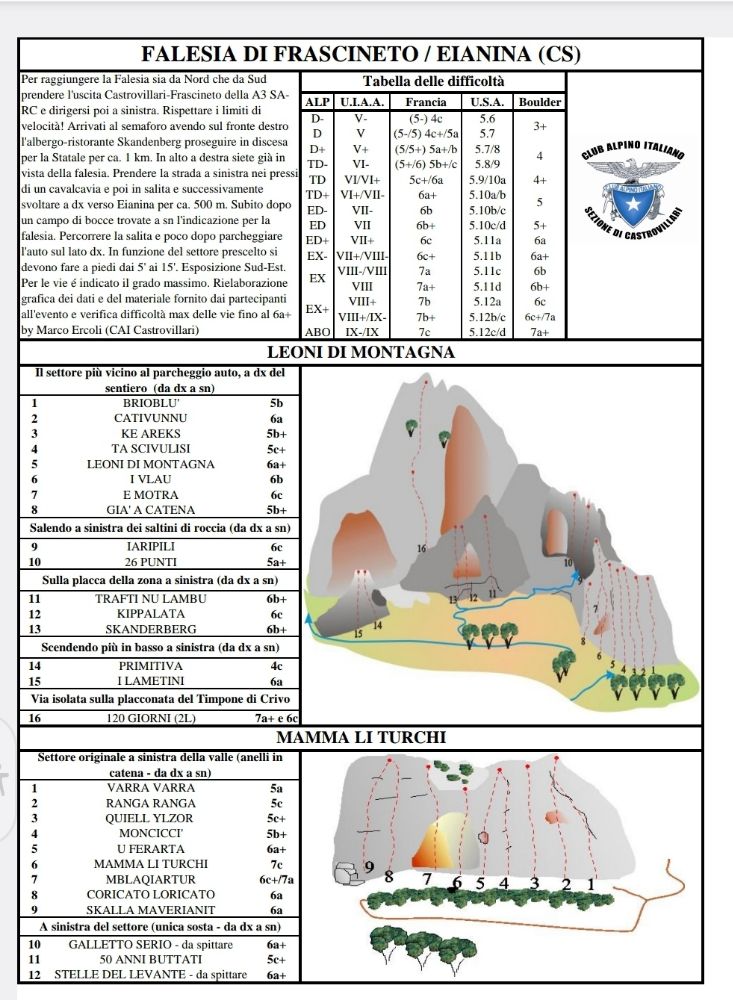 Wow! That warranted a more thorough scouring of the Internet, and sure enough http://www.Falasia.it came up trumps. “On the Ionian slope of the Pollino National Park, the Falesia Frascineto-Eianina is the major climbing area in the whole of Calabria” (and pretty much the only climbing area).
