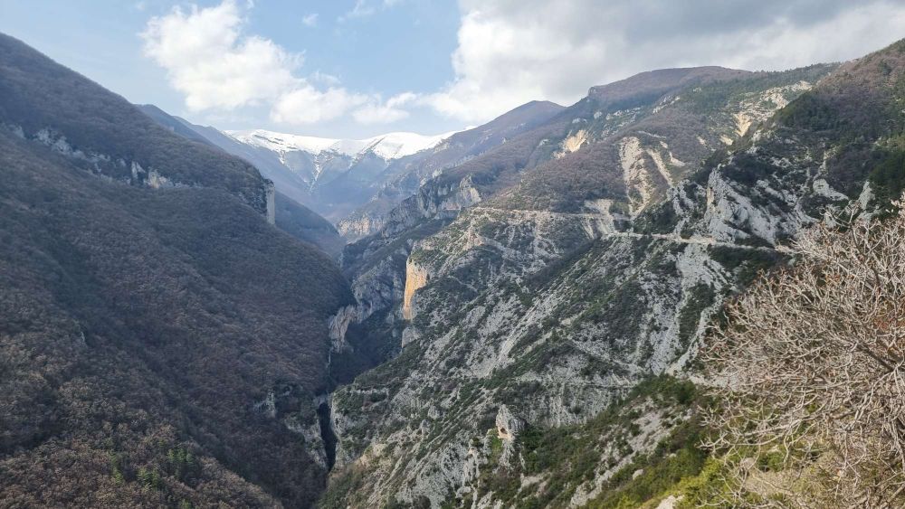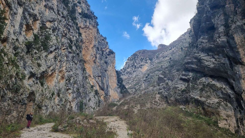 … before opening up into a broad, upper canyon which holds a path that ultimately winds its way to the summit of the highest peak of the Maiella, Monte Amaro (2793 m).