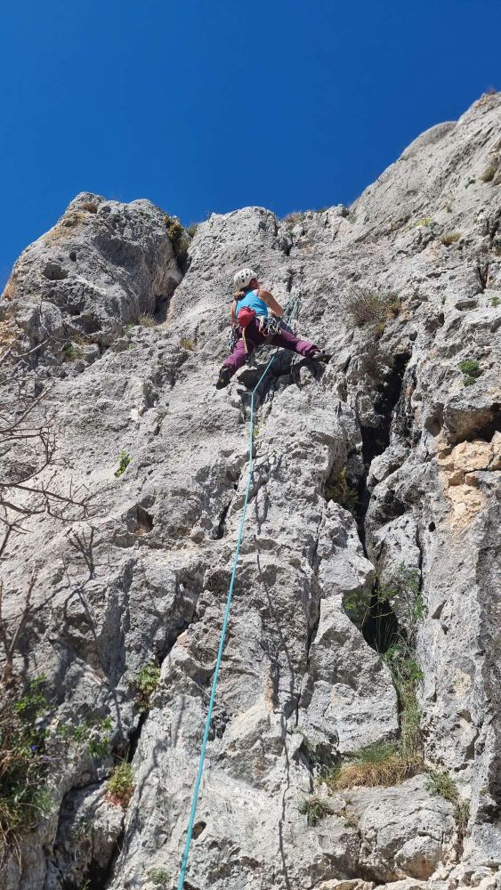 Ghibli, 6a, was also excellent (and for once, fairly amenable!) Se la Mia Pella Vuoi, 6c, was a different prospect – definitely no cigar! Plenty more sectors to explore, above and below the path.