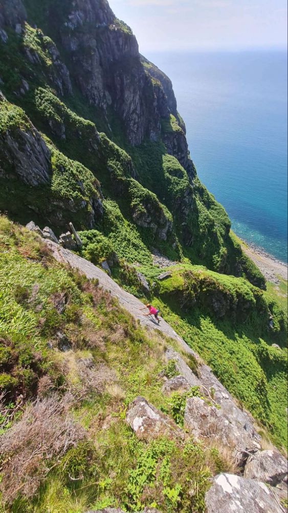 Like a number of crags hereabouts, discovered with the help of a drone, this looks like vertical grass from above…