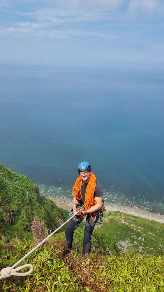 Day 1 briefing and a short masterclass / refresher for our visitors on some trad and seacliff skills from Calum Muskett and Steve Long.