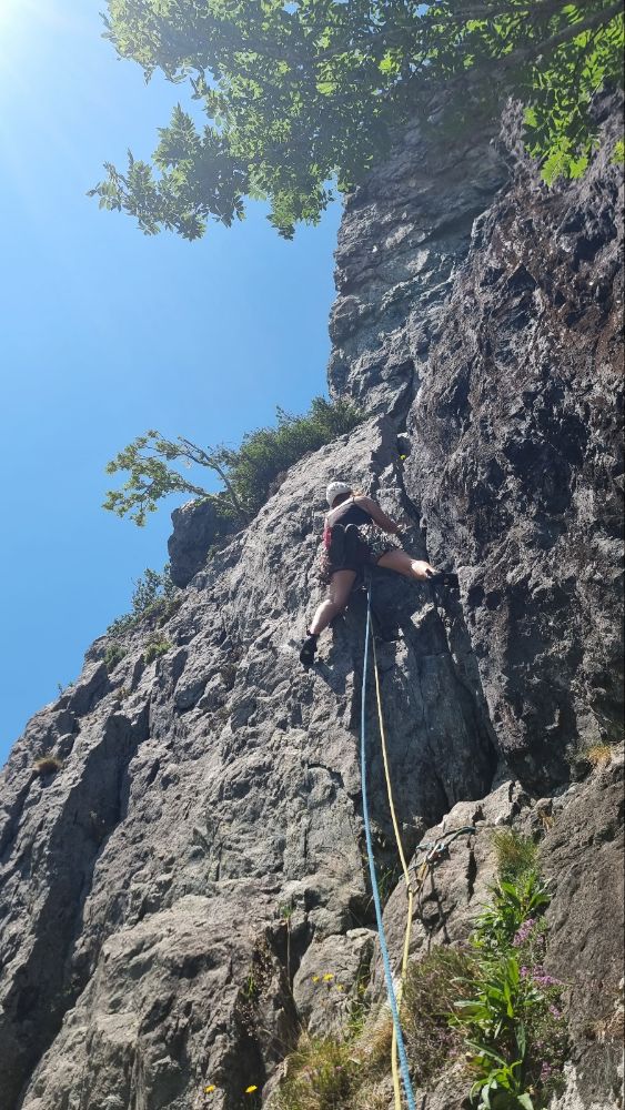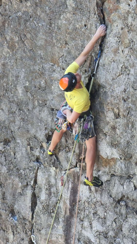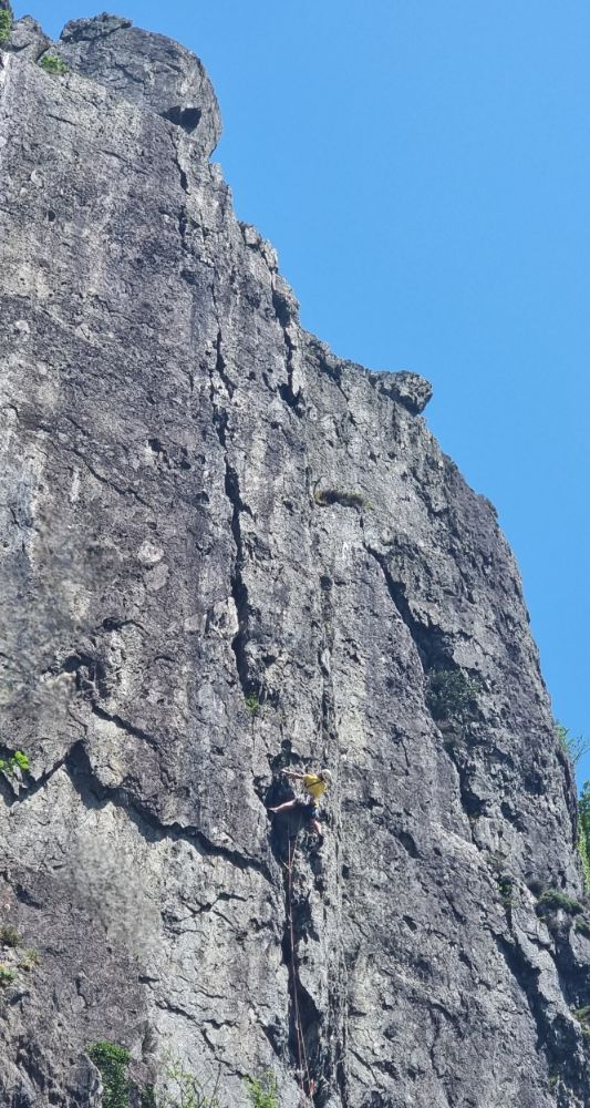 Not strictly speaking in keeping with the “celebrating British Trad” vibe, but we did visit on Steve Long’s recommendation that it was “adventure sport”. The Wild Blue Yonder, 6b, is superb and Apricity, 6c, has one stopper move.