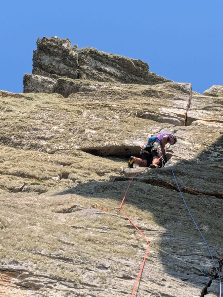 … and then saved the day, showing the commitment I lacked, to rescue the gear after I backed off Alter Ego, E1 5b (shattered ego more like!)