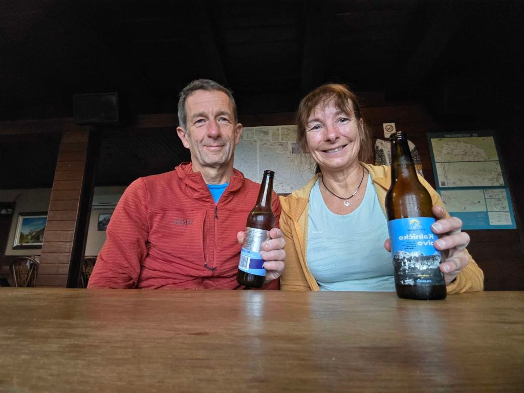The hut / restaurant had quietened down by evening and we celebrated in style with huge platefulls of hearty fare, washed down by the local beer (for just over twenty quid between us).