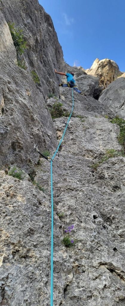 Monday was a complete contrast, as we had the place entirely to ourselves. The ridge features a number of “teeth” of which the castle is built on the largest. Prvi Zub, the fourth tooth, is tucked away in the trees, but is actually quite sizeable. We did the excellent Bijeli Ocnjak 5a up the right arete…