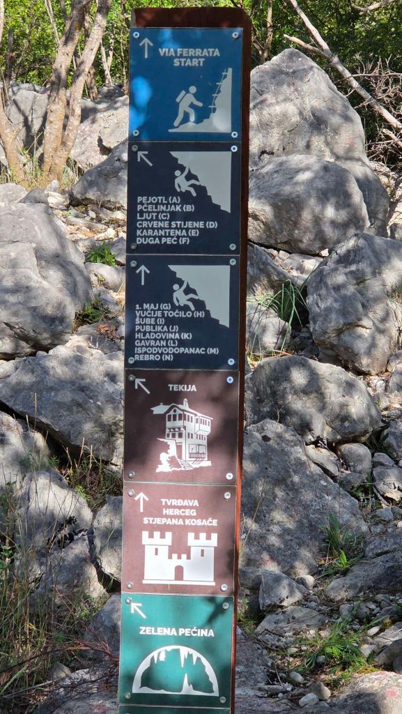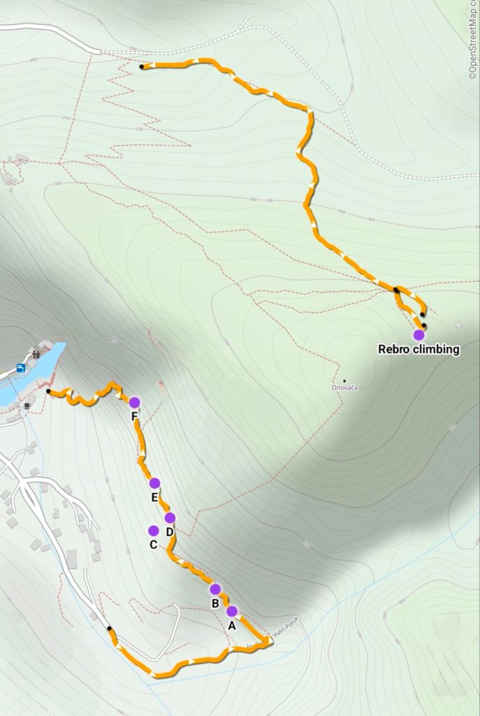 Sector Rebro is situated on top of the long limestone ridge. You can access it from the Eco Centre, but there’s a shorter approach from the parking for the fortress: