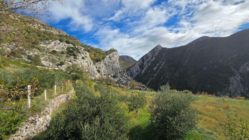Stari Bar old town sits proudly on a hill top, about 3km inland from the coast and the upstart seaside resort of Bar. No doubt a tourist hot-spot during the season, it was pretty quiet in November. Gazing up from the coast road, you can just about make out the fortified town walls, but as a climber your eyes are drawn beyond these to the splash of orange rock above town – surely that must be a crag…