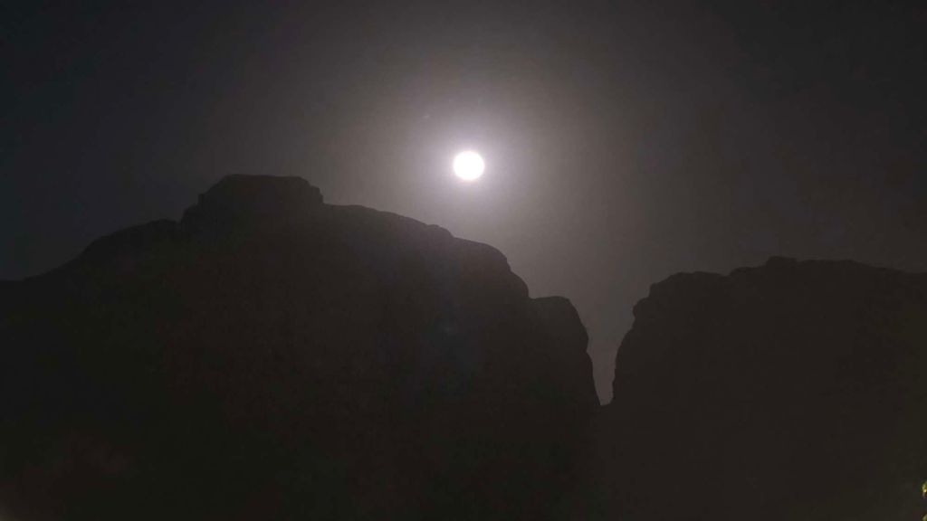 The attraction of winter sun, desert landscapes, and big trad adventures sparked more than just my imagination, and it was a band of eight bleary travellers, Rucksackers and friends, who finally assembled at Luton Airport for the pre-dawn flight to Ammen. No lost bag dramas, and our smiling minibus driver was there as planned to whisk us on the 3hrs 30 drive to Wadi Rum. Arriving after dark at Hamand’s Bedouin guesthouse, the full moon picked out the surrounding rockscape and gave a hint of what awaited in the morning.