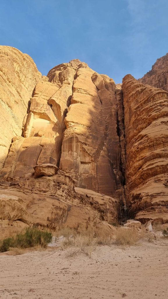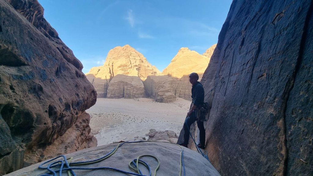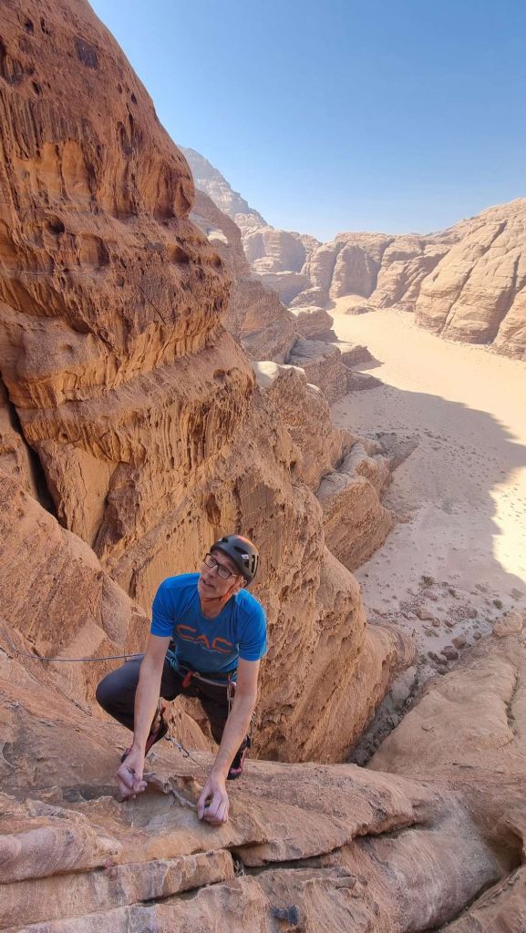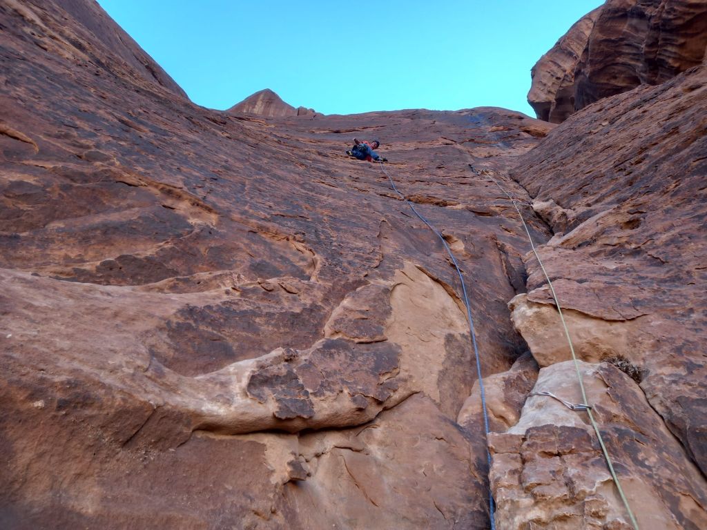 Tony Howard, in the definitive guidebook, cites the line as the best established by renowned pioneers Duverney-Monnet in Wadi Rum, which is praise indeed.