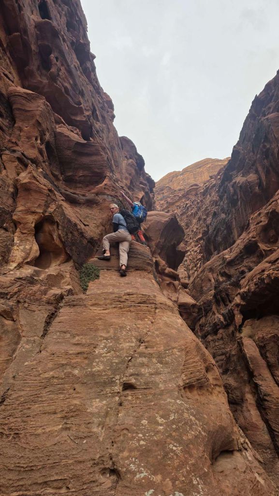 Endeavouring to follow the descent description in reverse, we set off up Goat’s Gully and then followed the main path towards Rakabat Canyon until a branch right offers the option to climb up into a different Siq.