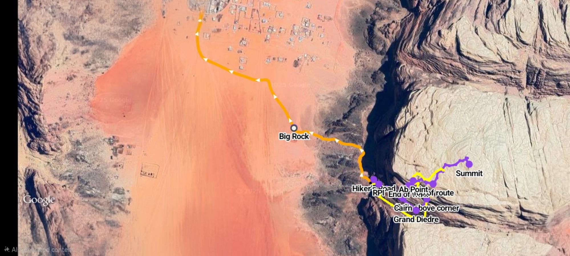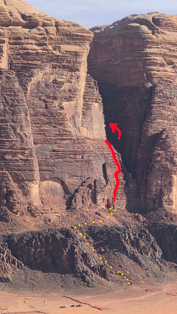 And an even more approximate topo of the first third of the route (before it disappears into the Siq