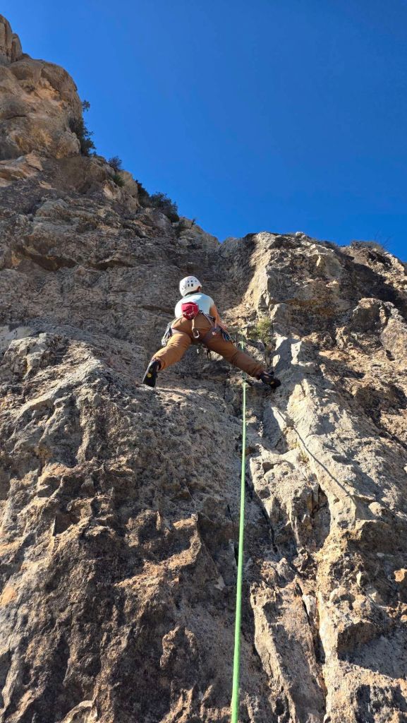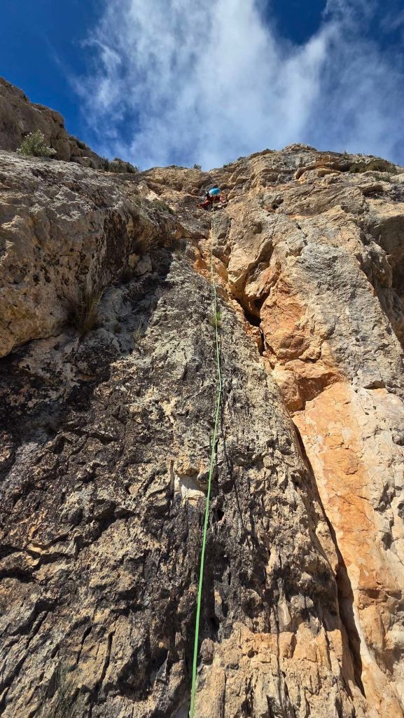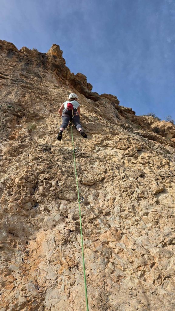 A sunny Sunday, and the locals are out in force. Sunday climbing always has a fun vibe in Spain, as the families and weekend-warriors hit the crags and you appreciate that not every Spanish climber is a chiseled, bronzed crushing-machine. Toddler tantrums at the top of a 3 are so much more tolerable in a foreign language, and anyway most of the crag will clear by 2ish when people head off for a leisurely lunch. The remaining crew are “average Joes” (or Joses) like us, struggling up 6s and being challenged by the occasional dash of shiny polish.